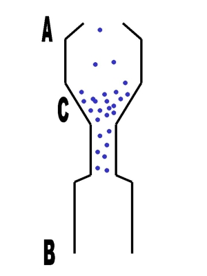 OK, the little balls represent little bits of work. The width of the "pipe" represent the capacity to deal with the work at different stages of the process. Here are some issues to consider at each stage of the process.